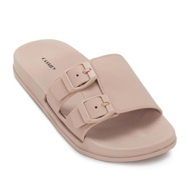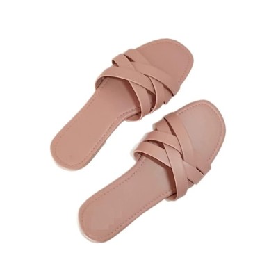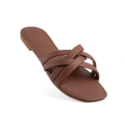 Woven Strap Flat Sandals, Brown, Slip-On Summer Slides