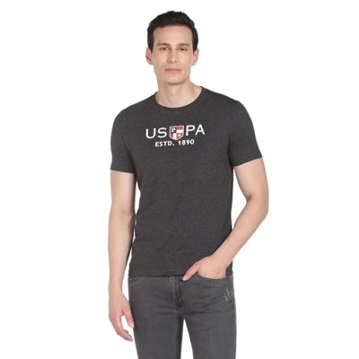 Men's Cotton Regular Fit Crew Neck Brand Print T-Shirt