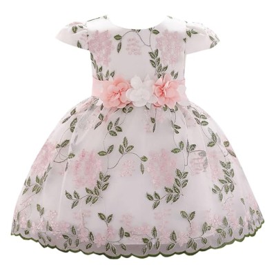 Girl's Fit And Flare Knee Length Polyester And Viscose Floral Applique Party Knee-Length Dress