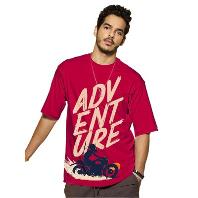 Men's Typography 100% Cotton T-Shirt - Oversized Fit, Round Neck, Half Sleeves
