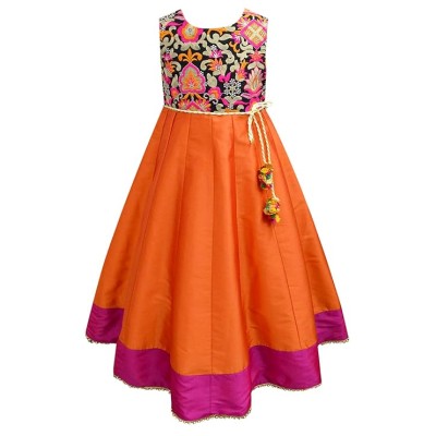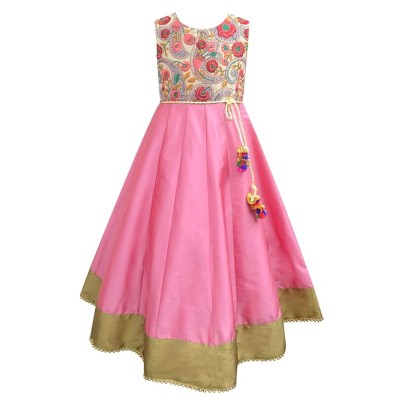 Girl's Anarkali Long Embroidered Sleeveless Gown Dress | Traditional Ethnic Wear Gown for Festival and Special Occasions