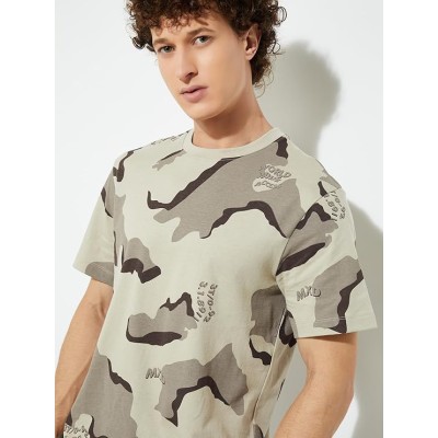 Men Half Sleeves Round Neck Cotton Camouflage Print T-Shirt