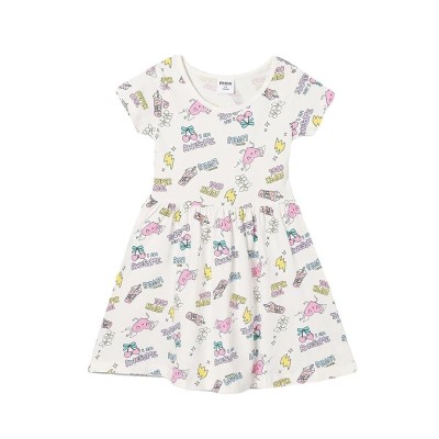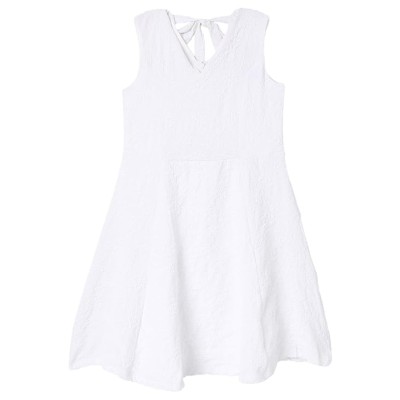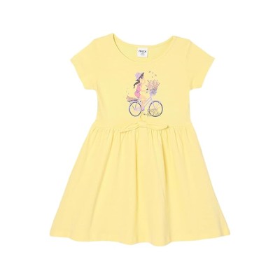 Girl's Half Sleeves Round Neck Lace Detailed Cotton Dress with Belt