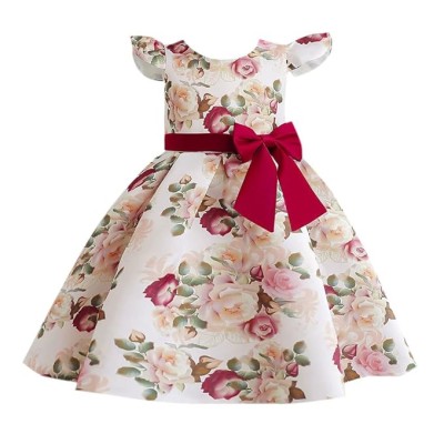 Girl's Fit and Flare Full Length Full-Sleeve All-Over Print Party Dress