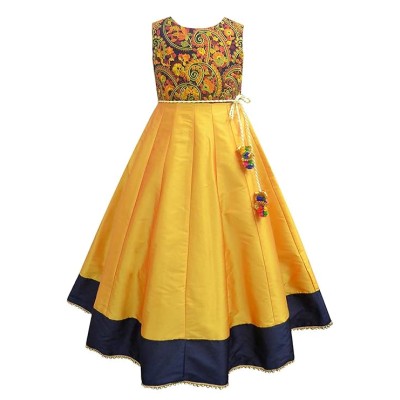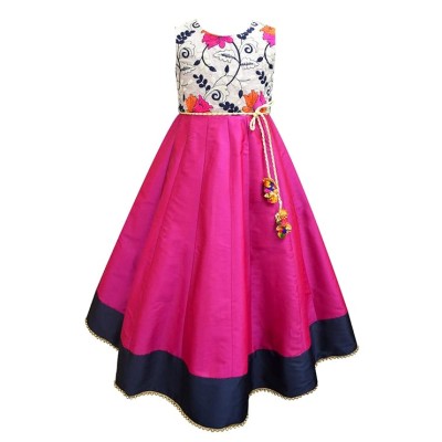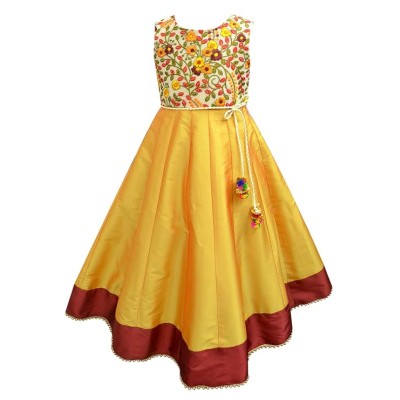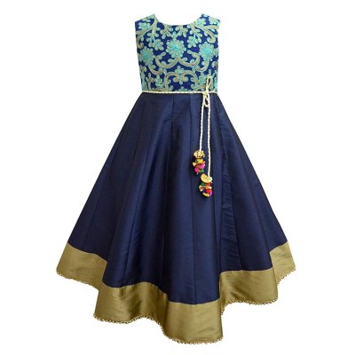 Girl's Anarkali Long Embroidered Sleeveless Gown Dress | Traditional Ethnic Wear Gown for Festival and Special Occasions