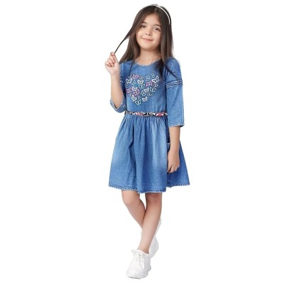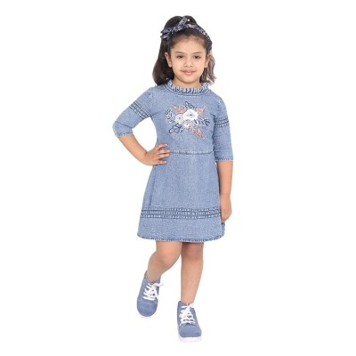 Girl's Pinafore Above The Knee Solid Denim Dress with T-Shirt