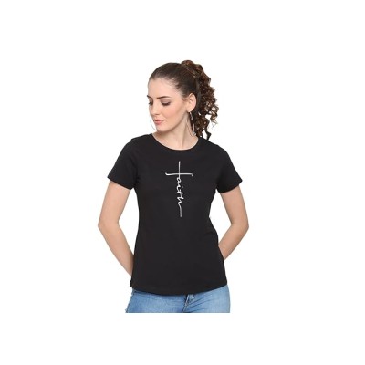 Cotton Short Sleeve Round Neck Slim Fit Solid and Printed with Regular and Plus Size Outer wear T-Shirts and Tees for Women and Teens