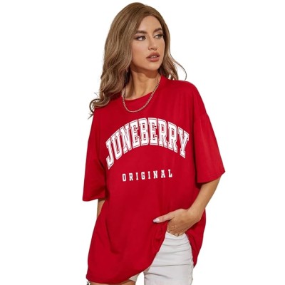 Pure Cotton Oversized Drop Shoulder Brand Logo Typography Print Round-Neck Baggy Fit T-Shirt for Women