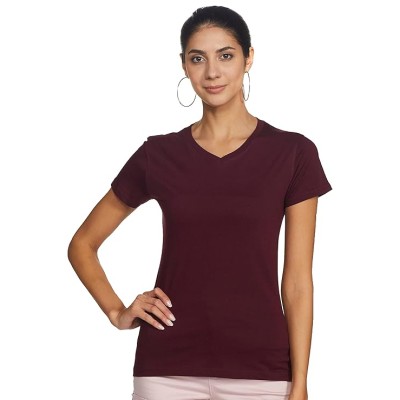 Women's V-Neck Half Sleeve Solid Casual Regular Fit Cotton Tshirt