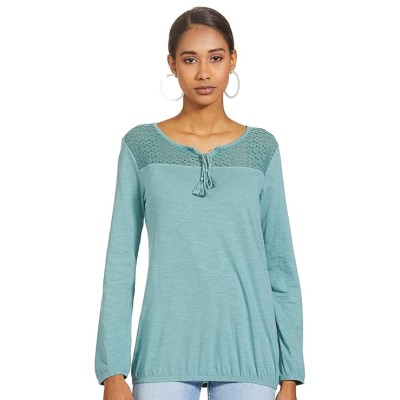 Women's Cotton Regular Fit Schiffli Detail T-Shirt