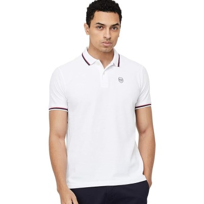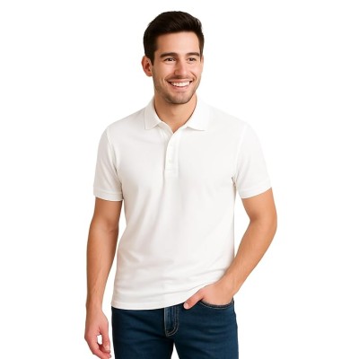 Men's Cotton Poly Half Sleeves Regular Fit Solid Polo T-Shirt (White_L)